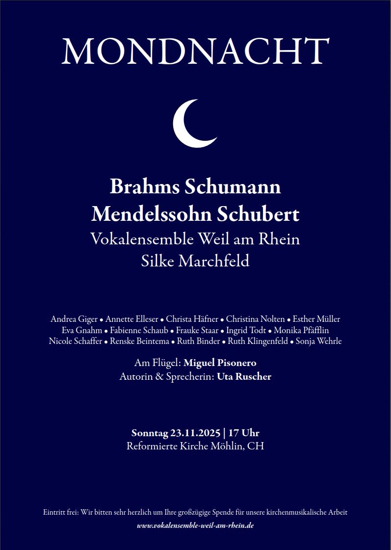 Eintritt frei. Wir bitten sehr herzlich um eine angemessene Spende für unsere musikalische Arbeit.